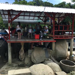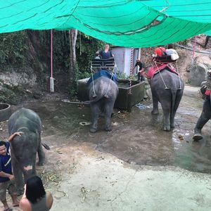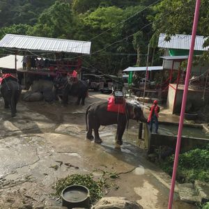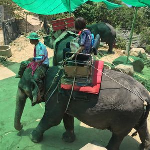場所がどこなのか、不安でしたが、ホテルから1時間弱トラックのような車に揺られて着きました。着くと順番に案内してくれるシステムだったようなのですが、順番を管理して次々に名前を呼んでいる女性が、けっこう威圧的な感じで、タイ語なまり?のような英語で読んでくるのでよくわかりませんでした。というか、名前ではなく、宿泊しているホテル名で呼んでいたらしく、気づかずにいるところでした。30分以上はまたされて、やっと像に乗りましたが、乗った像と像使いのさじ加減でルートが違い、平等じゃないなと思いました。像使いのひとはスマホで何枚も写真を撮ってくれて気さくでしたが、落とされないか不安でした。。像に乗っている間の最後にペンダントみたいなのを買わないかと子供に見せてきたので、いやいやここでは買わないでしょと思ったので、お断りしましたが、気を付けてください。
