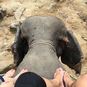 はじめは象の背中についているベンチに座って、ジャングルの中へと進んでいきます。意外と象の上は揺れが激しい!でもそれが楽しい!けっこう高いので、眺めがよく気持ちよかったです。日差しがとても強いので、日焼け止めは必須です。日よけの傘を用意してくれていたのはGOODでした。広場まででると、象使いの人が下に降りてたくさん写真をとってくれます(チップ必要)。1人は象の頭にすわらせてもらえ、長い間森の中を散策することができました。最高の思い出です!
