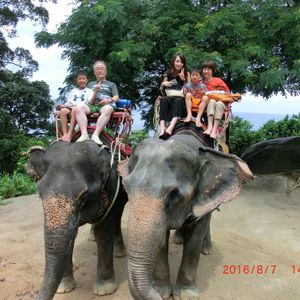 夫婦と娘と2人の孫の5人で利用しました。ホテルがマイカオ地区だったので、専用ミニバスを使いました。1時間ほどでトレッキング場に到着、2人と3人に分かれて象に乗り、自分のデジカメを象使いの方に渡して写真を撮ってもらいました。とても蒸し暑い日でしたが、何よりも孫たちが喜んでいたのが嬉しかったです。最初は落ちるのじゃないかと皆ビクビクしていましたが、すぐ慣れて、象の愛らしさに心が癒されました。象使いの方には1頭につきチップ100バーツを渡しました。家族の良い思い出になりました。