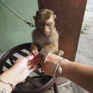 象使いの人は人によってテンションが違う。私たちの担当の人はずっと電話してたけど、写真を撮るスポットでは必要以上に撮ってくれた笑 象乗りが終わったあとにバスを待つ間に猿と触れ合えたのはラッキーだった。いろいろ写真を撮るのにサービスしてくれた!