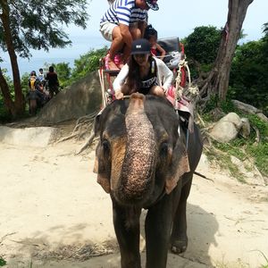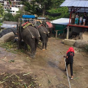 30分コースを選択しました。乗る前にサトウキビを買い、ワクワクしながら待っていましたが、中国人家族が象に乗り降りする場所で子供のパンツを下ろし、おしっこをさせてしまいげんなりしました。私たちが乗った象さんはまだ子供のようでした。乗る人の体格と、待っている順序で象さんを選んでいるようでした。担当のゾウ使いの人は移動中ずーっとiphone?でビデオクリップを見ており、折り返し地点の海が見える場所では石に座ってずっとゲームをしていました。他の人は写真を撮ってもらったり、もう少し見晴らしの良いところに移動してもらったりと羨ましかったです。もちろん写真撮影は料金に含まれていないので自分達で撮りました。更に象さん用に買ったサトウキビを勝手に取り出して食べられてしまいました。乗り場に戻ると別のスタッフからチップを出すよう言われ、気の弱い夫が払っていました。象さんはとっても可愛くて子供が喜んでいました。夫は匂いが臭くて辛かったみたいです。