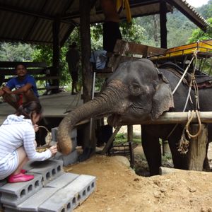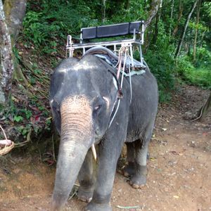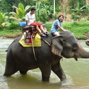 ゾウ使いに少しチップを渡しゾウさんの頭に乗せてもらいました。さらに写真を撮ってもらいとてもいい思い出になりました。タイでのゾウ乗りは2回目です このオプションのゾウは、少し小型です。 もしアフリカゾウの大型を希望の方はほかのツーアーがいいかもしれませんね。