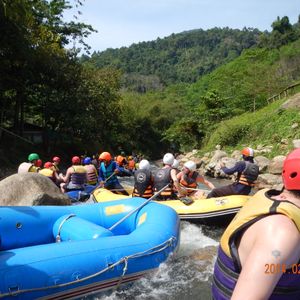 ラフティングは、皆さん書いてある通り、雨期でない限り上流の水門を開けて、一斉に4~50のゴムボートが下るので、ごっちゃごちゃといえばその通りですが、いろんな国からの参加で多国籍川下りは結構面白いですよ。スタッフも別会社ながら、水かけあったり、下っている途中もカエル投げ入れたり、ぎゃーぎゃーと盛り上がって楽しかったです。