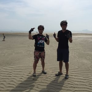 結構腕力が必要です。私は二人乗りの後ろでビデオ撮影してましたが、楽しかったです。水たまりの中もドンドン突っ走っていくのでTシャツまで泥だらけになりました。