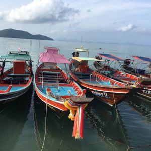2日前に天気予報を見てから予約しました。6時30分予定のホテルお迎えシャトルは5分くらい遅れただけで、あと1件ホテルに寄って港のチケットカウンター前に7時過ぎ到着。1番カウンターに行くようにドライバーに言われました。韓国人団体が前にいて少し待ちました。カウンターでスマホを見せて入島料1人250Bを支払います。パスポートコピー持参と予約時のバウチャーに書かれていましたが、受付時に自分で用紙に名前、パスポート番号を記入すれば良いので、特にプリントを見せる必要は無かったです。