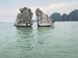 ハロン湾を目前にして、どんどん天候が悪くなり、「スコールなのですぐ止みます」という言葉に安心し船に乗り込みます。