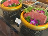 夕食のブッフェも非常に豪華で、お肉や魚介をその場で調理してくださるライブキッチンがあり、大満足でした。赤ワインも注文して旅の余韻をさらに深めることができました。