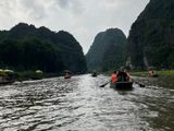 手漕ぎのバンブーボートに乗っての遊覧が、女船頭さんが歌を歌ってくれたり写真を撮ってくれたりとても親切で短い時間でしたが良い時を過ごせました。(船頭さんによると覆いますが)