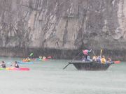 明るく面白いベトナム人ガイドさんが日本語で案内してくれました。行きのバスでベトナムのことやおすすめ観光地など教えてもらえました。ハロン湾に着くと早速船内で食事の時間となります。飲み物は別料金で帰りに支払います。6人で相席、食事は大皿で出てくるスタイルです。種類・量が多く食べきれませんでした。(味はそこそこ、クセも少なく食べやすいです。)1時間くらいして岸に着くと手漕ぎ船かカヤックを選択でき、私は船