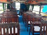 船は2階建てで、1階には6人掛けテーブルが6卓あります。出港直後は1階で食事をとり、その後は2階(屋上)へ移動する流れでした。食事の時間と景色を楽しむがうまく分かれています。タバコを吸う方は2階が喫煙可能です。