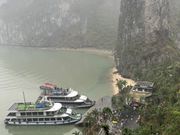 一日曇ってしまい、ハロン湾の景色が遠くまで見渡せるものではありませんでしたが、次から次に現れる岩や島々の景色はずっと眺めていられます。 船内調理される昼食は熱々で提供され、どれも美味しくいただきました。 途中上陸した島の中にある鍾乳洞は、想像よりも広く大きな鍾乳石の景色が広がっていました。 クルーズ船は揺れることもなく、4時間のクルーズはあっという間でした。 ハロン湾に向かう途中、日本語ガイド
