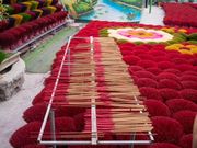 前日深夜にハノイに到着した際に霧雨でしたので天候が心配でしたが、当日は曇りで助かりました。 線香村まで距離がありますので車での移動時間が若干長いですが、思ってたよりはるかに色彩豊かで美しく、観光事業化されていると知っても来て良かったと思います。村では竹を細く加工して着色するまでで線香としての加工はまた別の場所で行ってるとのことでしたが、実際に線香加工も見せていただきました。一通り見たあと、ガイドさ