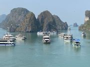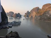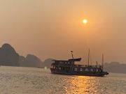 年始のツアーということもあり、21名のでのバス移動でした。 ハロン湾までトイレ休憩合わせて3時間でしたが、ガイドのクエンさんのお話を 聞いていたら移動の時間は気になりませんでした。 別のガイド2名のグループと乗船でした。 ランチは相席ですが、ほかの方の旅行記を聞きながら楽しい時間になりました。 お天気が良かったのでサンセットはとてもきれいでした。 クエンさんのお話がとても上手だったのでツアーに