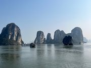 友人3人で参加しました。 ハノイ市内ホテル送迎を頂いたのですが時間ぴったりにお迎えいただきました。 移動は大型の乗り合いバスでした。座席は広々しているのでかなりゆったり座ることができます。 ハロン湾クルーズでの昼食はお腹いっぱい食べられるくらい料理が多く、美味しかったです。(ただ飲み物の値段は別会計でハノイ市内に比べると数倍はしました、日本と同じくらいなので許容範囲) 鍾乳洞を1箇所巡り、た