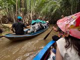 ホーチミン市内からバスで2時間ほど移動し、メコン川に浮かぶ獅子島へ。下船して養蜂場、ローカルソングを聴きながらフルーツをいただき、ココナッツキャンディ工場へ。お買い物も楽しめました。手漕ぎボートでリアルジャングルクルーズを体験し、メコンデルタへ戻って象耳魚などを食べてお腹いっぱいに!
