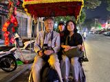 最初から最後まで私たち夫婦2人だけのツアーは、贅沢で落ち着けて、ガイドさんもハノイの景色も1人いや2人じめでした。まず始めに訪れたのは、チャーカー料理の店。さすがミシュランを取ってるだけあり、料理も店の雰囲気も客層も良かったです。全くナマズ臭さがなくて上品な味。なにより、ガイドのザンさんが、テーブルで調理?までしてくれて、食べ方も教えてくれて、なんと関係ない隣の人たちにも教えていました笑。次は待ちに待ったトレインストリートへ。線路ギリギリに置かれたテーブル席で、エッグコーヒーとソルトコーヒー(料金込み)を飲みながら、列車がスレスレに通るのを見るのはドキドキわくわくします。2回、短いのと長い列車の通過を見れました。その後、シクロ体験。15分は乗ってたと思います。11月の下旬の夜風は冷んやりと心地よく、少し上から見る問屋街や夜市は楽しかったです。シクロの脇をビュービュー通っていくバイクや車にスリルを味わえます。降りた後は、ナイトマーケットを散策。初めてのベトナムに慣れない私たちをガイドのザンさんは安全に連れてってくれました。ザンさん、最高です!ありがとうございました。一番の旅の思い出になりそうです。
