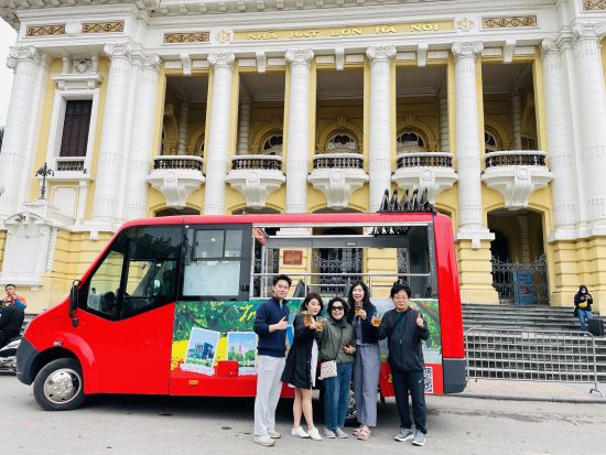 ハノイ市内観光 地ビールを片手にミニバスで楽しく観光スポットを巡る半日ツアー!バインミー付き<英語ガイド>