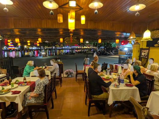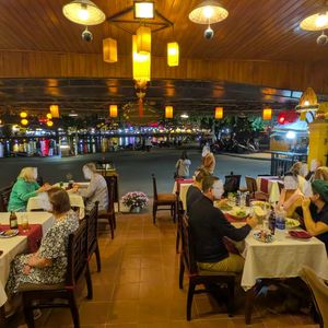 ホイアンはライトアップ等により、夜の散策が人気ですが、夕食のレストランは灯篭流しが行われているトゥボン川に面していますので、食事をしながらもトゥボン川の風景を楽しむことが出来ました。