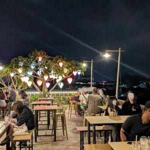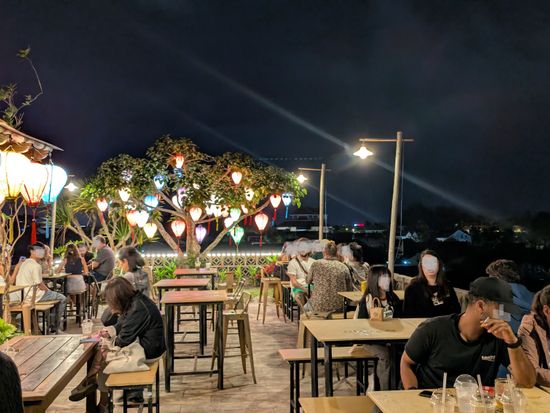 レストランの席は川に面した道路側、カフェでは屋上の席が良いです。