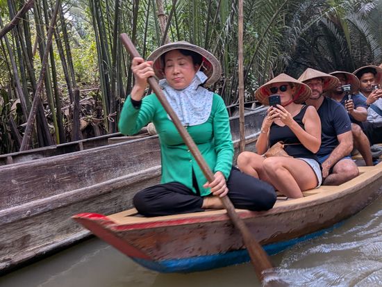 ホーチミンでは最も定番のツアーの一つですが、オペレーターのKhanhさん、ガイドのSamさんのおかげで充実した一日を過ごすことが出来ました。英語が苦手なのでグループツアーは不安でしたがSamさんの話し方は比較的聞き取りやすかったです。参加者は欧米、アジア各国から来ていました。自分を含めぼっちの参加者も何人かいました。バスの移動時間が長いですが、十分快適でした。足腰の弱い方い方は小舟に乗るのをスキップすることも可能です。