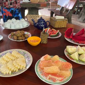 メコン川の島ではフルーツを食べ→ヘビを巻き→蜂蜜→ココナッツ工場→小舟→お昼の順番で満喫しました。島から島への移動はモーターボートなので移動も楽しいと思います。