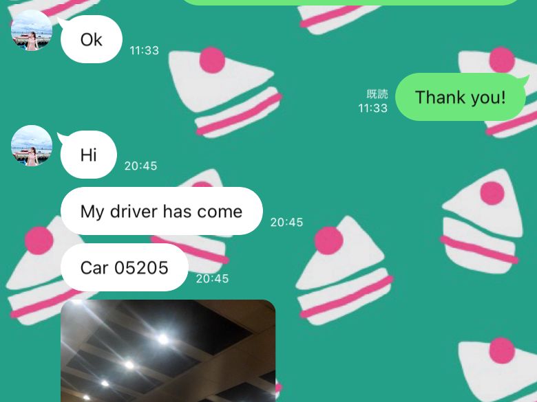 登録してあったLINE IDから前日に返信があり、迎え来る時間、車のナンバー、運転手の名前が記されてあり、安心しました。