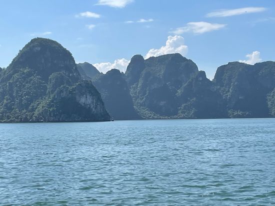 石灰岩の大小岩山が海に幾重にも無数に浮かぶ絶景は期待以上でした。船は大きくてほとんど揺れを感じることもなく、3つのイベントとサンセットクルーズもあって、6時間はあっという間。
