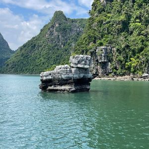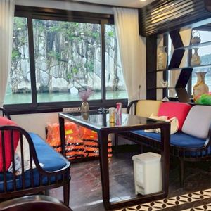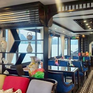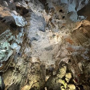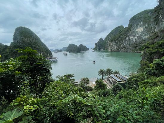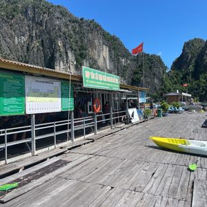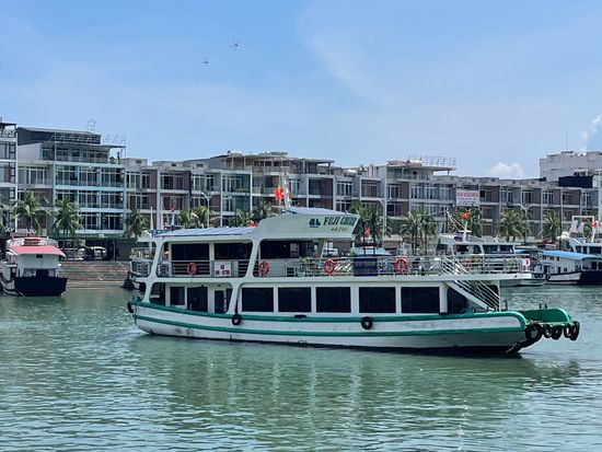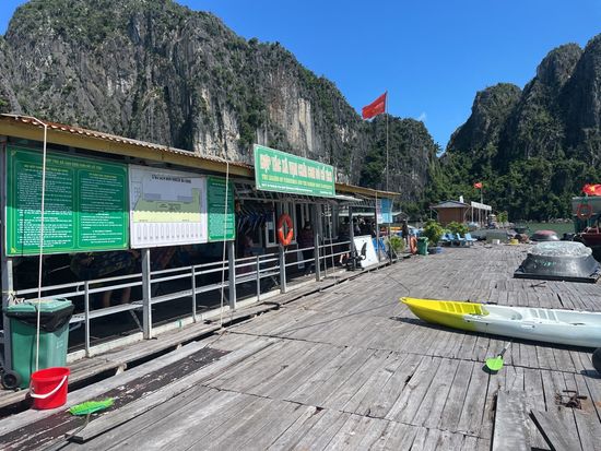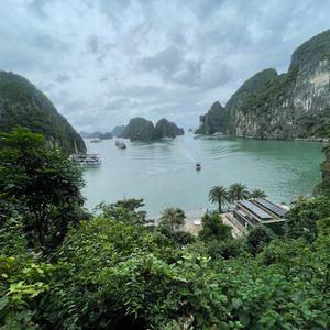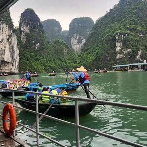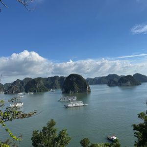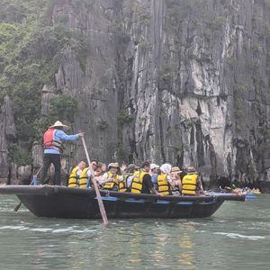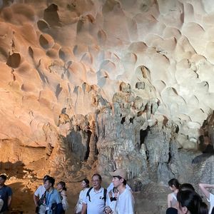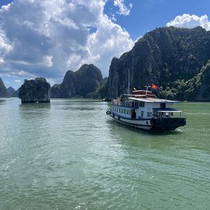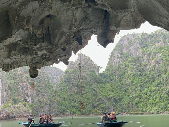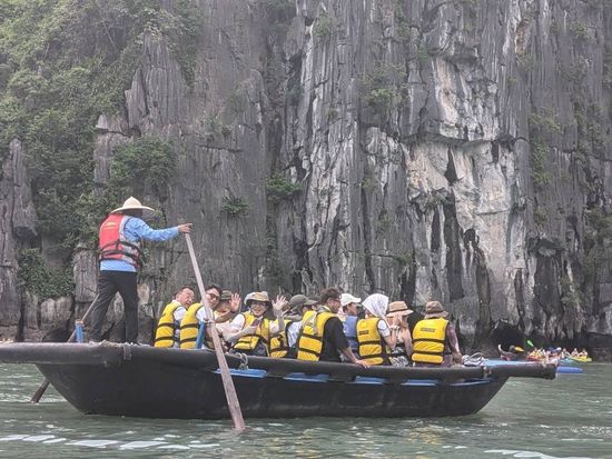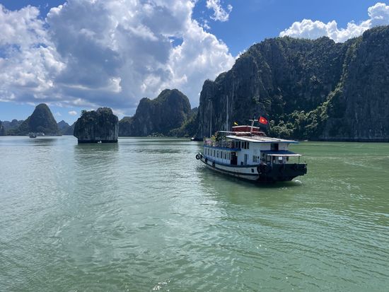 ピックアップも時間通り、移動のバスも快適で、ガイドのクエンさんの話も面白く、トイレ休憩のお土産物屋はお値段高目なので冷やかし程度で、遊覧船も冷房が効いて快適で、乗船後のランチもすべておいしくて、食べてる間に見どころに到着、ボートのスタッフも気配りができて、圧倒の鍾乳洞に驚き、ボートに乗り換えて岩の下をくぐって、同船のシーカヤックのカップルの写真を撮って、ティートップ島の階段は本当にきつかったですが上る価値あり!帰港に向けて奇石の間をめぐって、帰りもバスは快適で、サービスエリアのフォーもそれなりで悪くないですよ、帰りはイオンモールで降ろしてもらいお土産を買いに