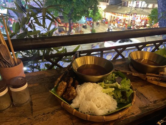シーフードの昼食は船の上で、ブンチャー(焼き鳥みたいなもの)の夕食は2階の通りが見える席でいただけます。日本人のみのツアーで安心して参加出来ました。