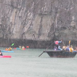 当日の天気は、2日後に台風の接近が予想されるものの、雲り一時雨のまずまずの予報でした。 途中、短時間の雷雨に遭遇したもののハロン湾ツアーのすべての行程をほぼ支障なく満喫することができました
