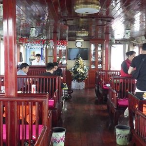 陸で移動するバスの道のりは快適でほかの口コミにあるような狭いバスではなく安心しました。ただ年末ということもあり参加者が多かったので大型バスだったのかも、、狭いバスになるかどうかは日によるかもです。ハロン湾のクルージングはとても静かで綺麗で、よかったです。船の外?に出て自由に写真が撮れるのもよかったです。食べ物は出ますが飲み物は別料金でワインボトル、缶ビール、ソフトドリンクで料金高めです。