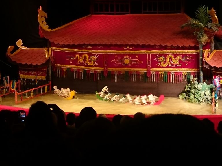 水上人形劇は週末ということもあってか、大入り満員で一番後ろの席からの観覧でしたので、細かいところはかなり遠目でわかりづらかったです。また、事前に知ってましたが全編ベトナム語なので、英語でもいいから少し説明があれば、もっと内容に入っていけたのにと思いました。