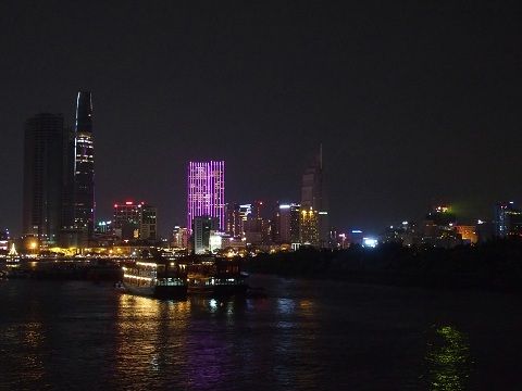 夕刻以降、これまたスケジュールの都合なのか普通に他のグループと一緒になりましたが、夜のディナークルーズでは大変夜景がきれい、料理が上手いに加えて建国記念日だったため、サイゴン川の花火も打ち上げられ、素晴らしい夜でした。