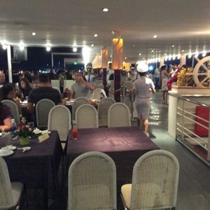クルージングの最中に晩御飯を食べました。(飲み物は自腹)