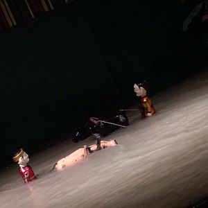 人形劇は思ったよりスピード感があり、人形が激しく動くと、最前列には水しぶきがかかるほどでした。内容も興味深く、たびたび笑いも起こっていました。ガイドブック等で事前に予習しておくと、登場人物やストーリーが理解できて、より楽しめると思います。