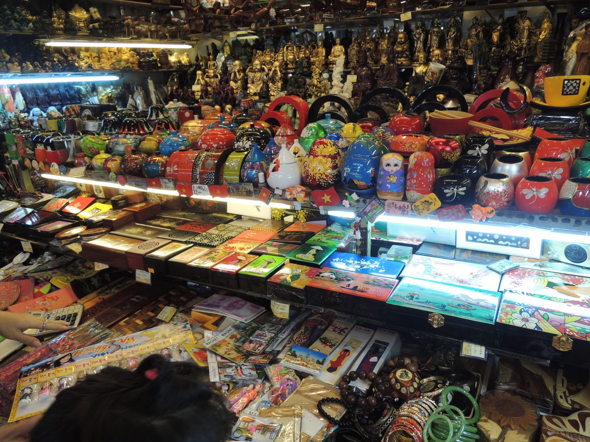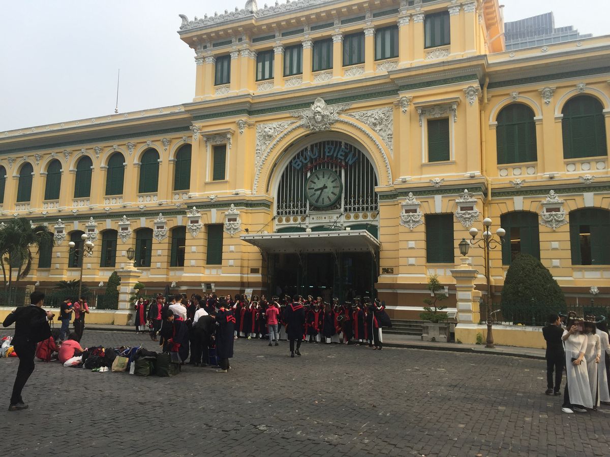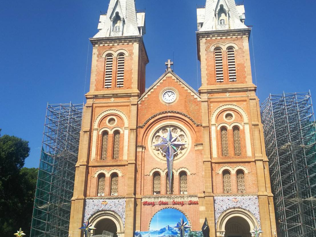 ホテルに朝時間通りに迎えに来てもらい出発。統一会堂では各部屋の説明を詳しくしていただきベトナムの歴史を改めて勉強。聖母マリア教会は現在修復工事中なので中には入れませんでしたが造りが素晴らしく、修復にはフランスから赤レンガを輸入しているとのことに驚き。そうそう、教会の前の聖母マリア像の足元は必見。何かがいますよ。中央郵便局は入り口から見た正面奥のホー・チ・ミンの肖像画が何とも言えないインパクト。たくさんの観光客で郵便局でなく市場みたいに錯覚するくらい。時間があればお土産品を見たかったかな。ショッキングピンク?のタンディン協会はインスタ映えするね。最後にベンタン市場に行ったけれど、欲しいものが決まっていれば品数が豊富なのでいいかも。値段は交渉次第とのこと。