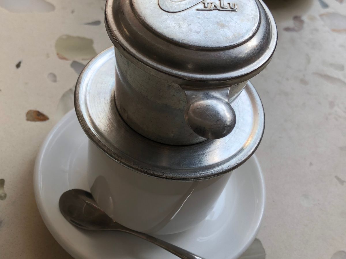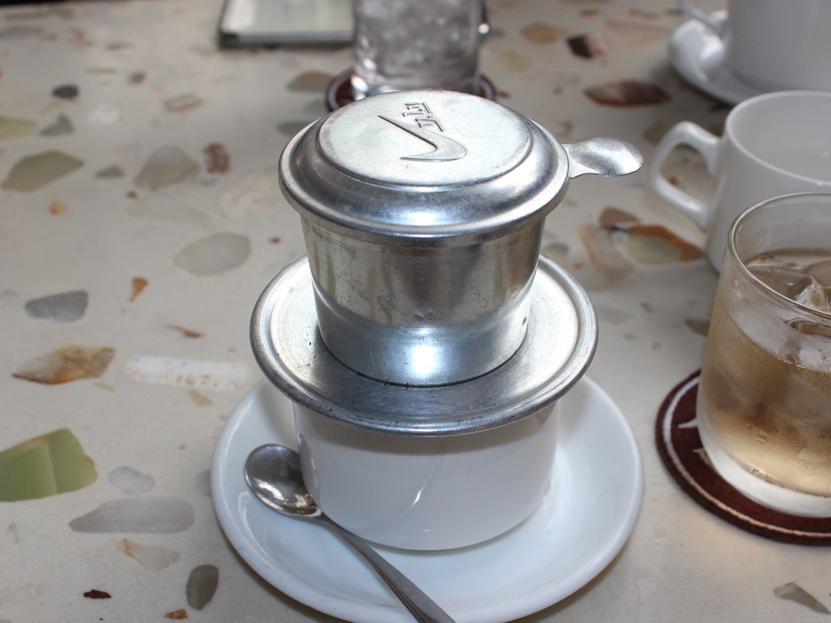 ベトナムコーヒーの入れ方、飲み方を教わり、そこで、お菓子の試食。