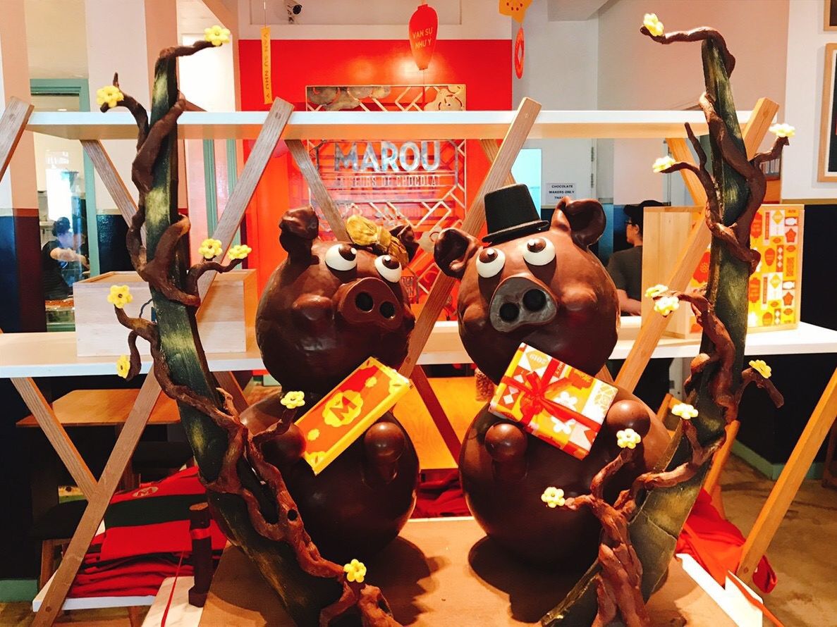れています。今は旧正月の飾りつけが建物全部に施され、ピンクのツリー