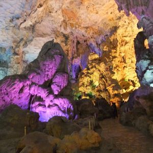 こちらは今回のティエンクン鍾乳洞と比べ、比較的落ち着いたライトアップが施されております。