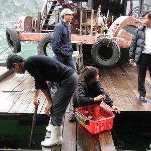 4) 水上生活村を案内とあったが、魚養殖業者の船で普通の水上生活者の村とは大いに異なる。