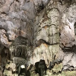 ガイドさんに今日の夜帰る予定で、空港までの送迎が20時30分にある事を報告、何とか間に合うだろうとの事でした。4時間かけてハロン湾に着きました。桂林とは違って大きな立派なターミナルへ。大勢の外国人が詰めかけていて人の多さに圧倒されました。続いて数え切れない多くのクルーズ船!乗り込むと間もなく数々の巨岩が現れてその規模の大きさに感動しました。オプションの手漕ぎボートは日本人全員乗ったと思います。岩を目近に見られてなかなか出来ない経験が出来ました。その後の鍾乳洞も洞窟内の広さに目を見張りました。