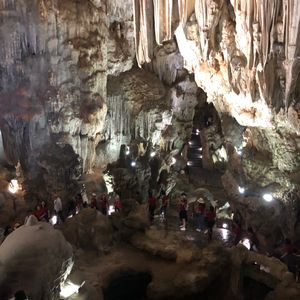 2時間近くのクルーズの後鍾乳洞に到着します。日本の鍾乳洞と違い、上から水がポタポタ落ちるという感じではありません。むしろ乾燥している感じです。とっても迫力のある場所でした。クルーズ自体は3時間程度ですが、本当は船で1泊して夜や夜明けの景色も観ると違った趣が感じられるとのことでした。