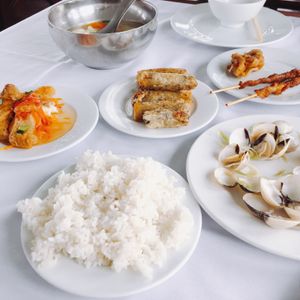 ご飯は結構ボリュームもありますが5〜6人で取り皿にとってシェアするスタイルでした。飲み物は別料金です。