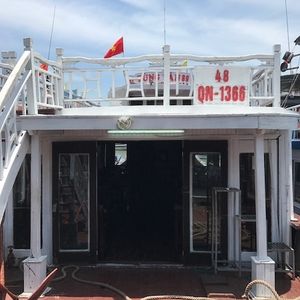 友達二人で参加しました。四時間弱のバス 一回トイレ休憩 お喋りしてたらあっという間に着き ガイドさんのてきぱきとした誘導ですぐに船へ。船は綺麗で ランチも美味しくて お天気も良くて最高でした。ランチの途中で魚介類を売りにきて、そのまま調理してくださるというので、シャコをお願いし、とても美味しかったです。食事中 アクセサリーや色々売りに来られ、やや、鬱陶しく思いましたが、ついつい、沢山買ってしまいました。でも、日本のお店やネットで買ったのと違い ハロン湾の 思い出がいっぱい つまった品物ばかり、義母や母もベトナムならではのお土産を喜んでくれ、今では買ってきて良かったと思います。残念なのは 外が暑くて 船の中ばかりで過ごし あまりに出さなかったので、ハロン湾の美しさを 充分満足行くまで堪能できなかったことです。