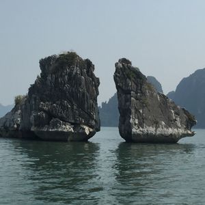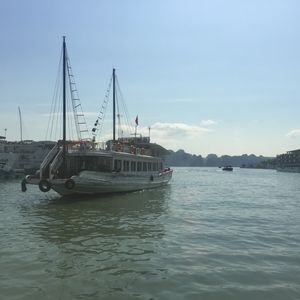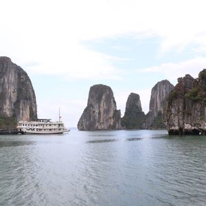 肝心のハロン湾は、風が強く鍾乳洞でしたっけ、メーンの場所は見れませんでしたが、想像以上の奇岩の数々と、凪の海に心地よい風が吹いていい気分でした。船の二階にあがって、椅子に寝転んで海風をあびながらボケッとしてるのが一番幸せでした。食事も美味しいです、ただ、特別注文した巨大シャコを別の日本人のお客さんが露骨に持っていって食べてしまったのはショックでしたが(笑)船員さんは謝ってましたが悪くありません、まあ旅だしいろんな方がいるので仕方ないですね。