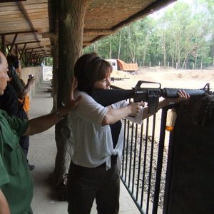 クチまで行くにはツアーがいいと思います。射撃の試射がありますが、時間が短く(約20分)混んでいたりすると時間が足りません。うちが終わって集合場所に戻ってみたら、もう誰もいなくて焦りましたが、現地催行会社の日本人の方と連絡をして(申し込みをしたときに予約バウチャーを印刷すると連絡事項等が書いてあるので、何かあった時には役立つと思います)、ガイドが先に行ってしまった事がわかり、急いで迎えに来たというハプニングはありましたが、安くていいツアーだと思います。うちは、射撃が一番の目的だったので、そういうツアーがあればいいなと思いました。