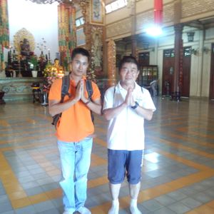 が、一つだけ残念なことがありました。今回の参加者は3組計7人でしたが、私と父以外の5人がロンソン仏教寺院で線香のぼったくりにあいました。涅槃像の場所で女の子が勝手に案内を始め線香を手向けさせたところで線香代を請求してきたそうです。それも1本20万ドン!日本円で約1200円ですよ。後からガイドさんに伝えたら、ガイドさんはとても責任を感じたようで、その女の子を探しに行ってくれましたが、逃げたそうです。その後も何度も私たちに謝り、代金は自分が出すとまで言ってました。勿論受け取りませんでしたけどね。でも、責任を感じていたガイドさんは市場でお菓子のセットを各組にお土産として買ってくれました。別にガイドさんが悪いわけではないので、ちょっと気の毒でしたがお菓子は頂きました。