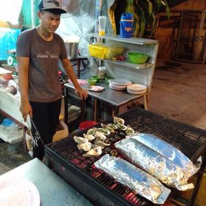 サザンブリーズのタンさんに案内していただきました。市場は暑いので苦手と話すと、有名な刺繍店に変更してくれたり、晩御飯に地元のシーフードのおいしい店で一緒に食事をしてくれたりました。Ca Ran です。おいしかった!