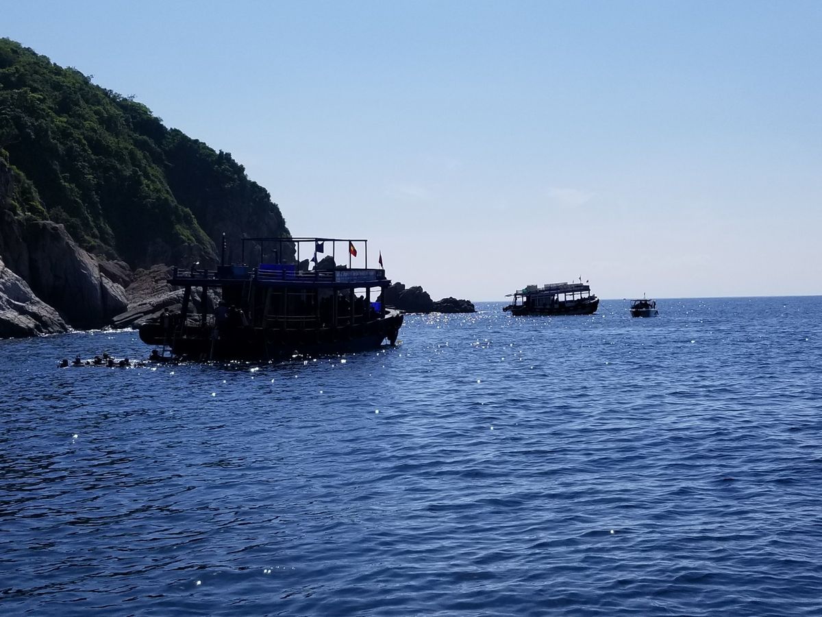 この日は私たちのみ、かつ泳げる2人という事もあり、付いてきたガイド氏は泳ぐ気無く、船上で船長たちと掛けトランプに熱狂。昼食後はクルー皆んなでお昼寝w 海から上がると暖かいお茶やバナナを振舞ってくれたりと気遣いはして貰いました。過剰に構って貰いたくない私たちにはぴったりなツアーでしたが、アジアらしい⁈緩いツアー。そんな文化の違いも含め楽しめる人向けのツアーだと思いますww