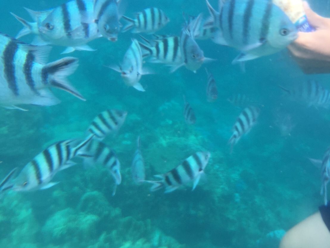 海が温かくて綺麗で魚達と戯れて幸せでした(笑)